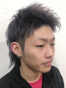 サイドは高めの位置でしっかり刈り上げたワイルドツーブロックにしてもらいましょう。トップは長めに、前髪は目にかかるくらいの長さで全体を整えます。毛先に無造作な動きをつけるため、太めのロットでパーマをあててもらいましょう。