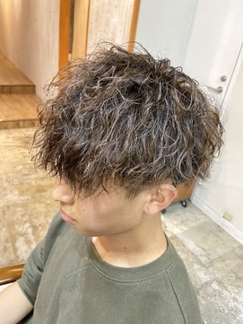 全体的な髪の長さはミディアムでツイストパーマにしてもらいましょう。前髪は目にかかる長さ、サイドはツーブロック、襟足は刈り上げてもらいます。