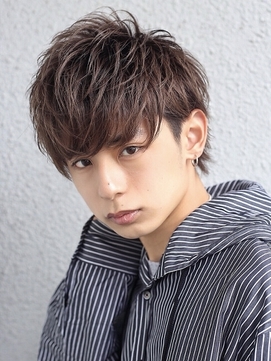 近年再ブームを巻き起こしているウルフスタイルの髪型です。軽さを出したフェザーマッシュと組み合わせて、エアリーにスタイリング。全体にレイヤーを入れることで、束感を出しやすくしています。可愛いにもかっこいいにもなれる女子ウケ抜群のメンズヘアスタイルです。