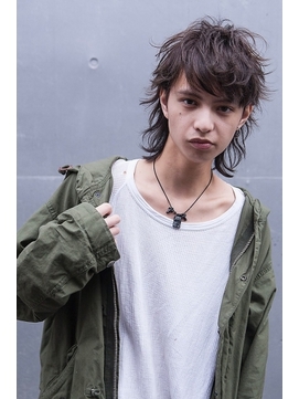 アッシュのロングネオウルフになっています。メンズのロングだと重くなりがちですが、アッシュにして全体的に軽めにカットすることでオシャレに仕上がっています。前髪もしっかり分け、サイドとなじませることでこの髪型に近づくことができます。