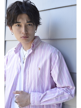 メンズネオウルフ×パーマ×ミディアムの頼み方&セット方法