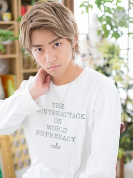トップにボリューム感を持たせる切り方で、サイドは耳が隠れる長さにしてほしいとオーダーしてください。外ハネになる切り方をしてもらうと全体的に動きのある髪型にできます。髪の色はハイトーンにするため、ブリーチをしましょう。そこにミルクティー系の色味を入れて、きれいなハイトーンカラーにします。