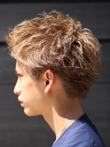 サイドから襟足は刈り上げ、全体はマッシュショートレイヤーでカットしてもらいましょう。カラーはブリーチ後のミルクベージュでオーダーします。