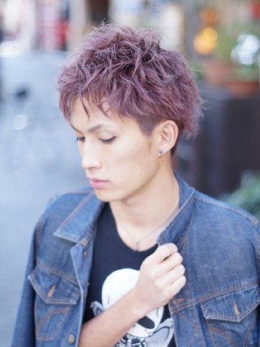ミディアムマッシュベースで、襟足は刈り上げずやや短め、トップは動きが出るようにレイヤーを入れてカットしてもらいましょう。カラーはブリーチ後にヴァイオレットアッシュでオーダーします。パーマはミックスパーマ、サイドとバックはピンパーマでナチュラルな動きが出るようにオーダーします。