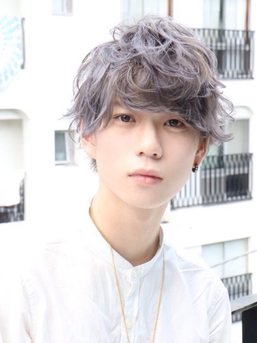 パーマなし、カットとセットでウェーブ感を出しているヘアスタイル。透き通るようなカラーが眉毛にかかる重めのマッシュスタイルにエアリー感もプラスした髪型です。