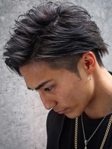 全体はソフトなモヒカンベースにカットします。前髪は長めに残します。前髪からトップにかけての毛流れは自然につなげます。ボリュームのある髪質の場合は、カットでボリュームを落とします。サイド部分にあえて、ツーブロックを入れてみてもいいでしょう。