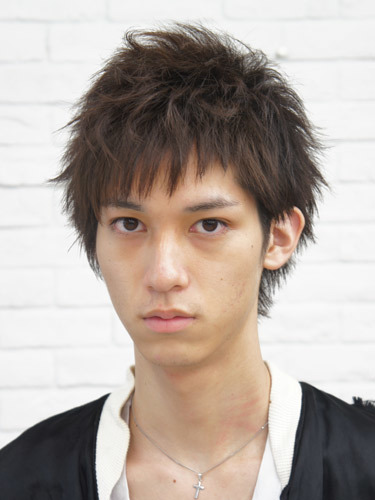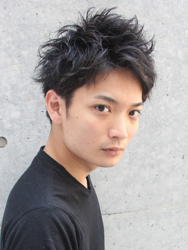 黒髪ながら、アップバングした前髪と無造作に散らした毛先が軽やかさをプラスして、メンズらしい爽やかな印象の髪型ですね。