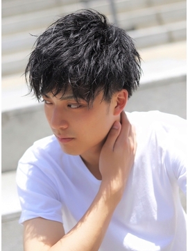 あくまでも自然なくせ毛感が出るように整えます。ストレートヘアのメンズは、あえて部分的にゆるいパーマを加えることもおすすめです。セット時に部分的に束感を出しますので、ボリュームはできるだけ落とさないようにカットするようにしましょう。