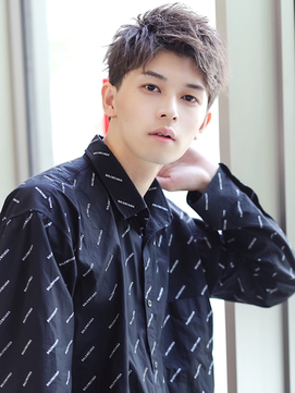こちらのヘアスタイルはニュアンスパーマとショートヘアを合わせた髪型でさらに前髪をかき上げ爽やかさもアップしています。ワックスだけで手軽にできるのでちょっと気分を変えたいときにもいいですね。
