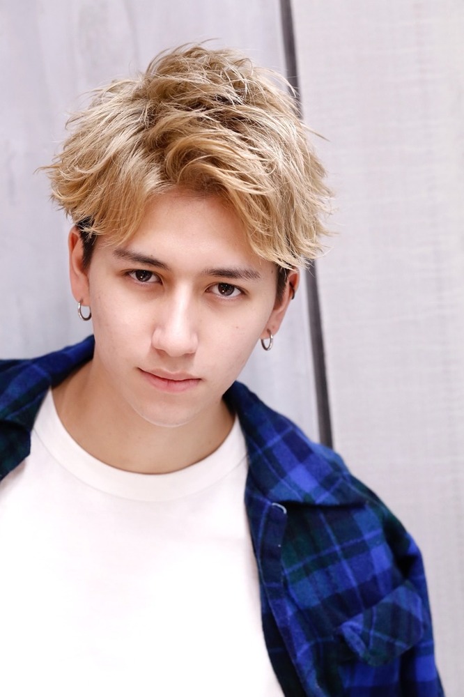 躍動感溢れる外ハネアップバングと、ツーブロックのコントラストがアーバンな雰囲気を醸し出すヘアスタイル。明るめベージュ系カラーにすることで、より動きのあるエアリーな質感に見せることができます。ゆるめのツイストパーマをかけているので、簡単にスタイリングも決まります。