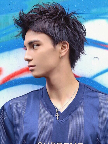 前髪は長めのソフトモヒカンに、立ち上げやすいようにカット。耳周りは刈り上げを入れすっきりとさせます。サイドもハネさせやすいようにセニングカットで軽めにします。直毛の方はニュアンスパーマをかけると動きが出しやすくなるでしょう。