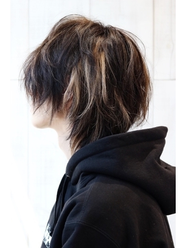 ミディアムセンターパートウルフハイライトブリーチワックスなし