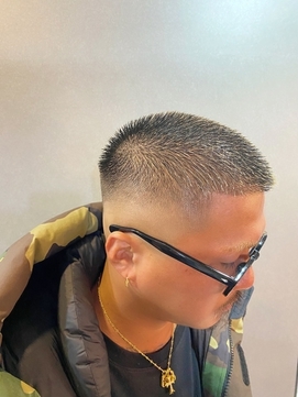サイトからトップにいくにつれて、徐々に濃くなるようにカットしていきます。トップも1cm以下の長さに整えていき、ワイルド感を前面に出しましょう。簡単な髪型ですが、表情と調整をしながらカットすることも重要なポイントです。また、全体的なシルエットも意識しておきます。頭の形が悪いときは、丸みを帯びたようなカット方法を取り入れることも大切です。