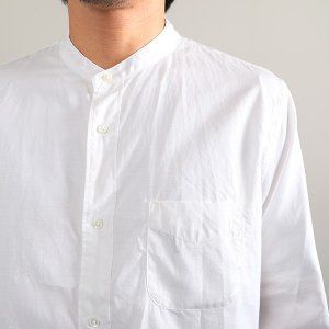バンドカラーシャツはどのようなデザインも着こなしがし易く、とても使いやすいアイテムです。